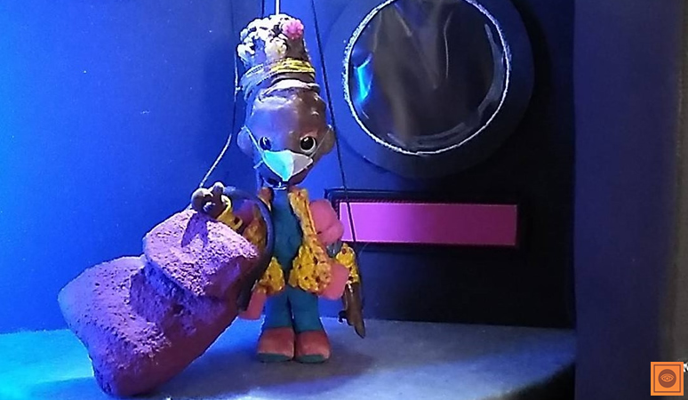Ficha Técnica: Concepção, criação, animação das marionetes, figurino e cenário: Juliana Notari | Dramaturgia e iluminação: Juliana Notari e Laura Corcuera | Direção, câmera e edição: Laura Corcuera | Licença: Marionete Livre – Juliana Notari – Creative Commons 4.0., Brasil, 2021 | Fotos: Laura Corcuera