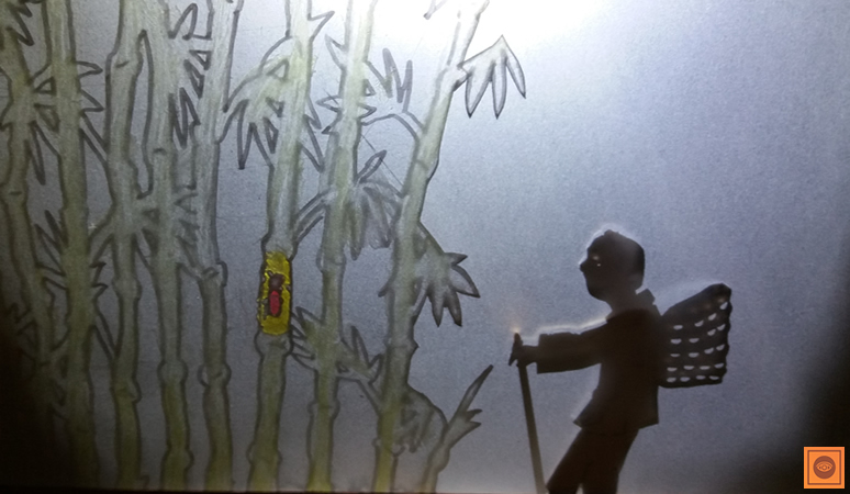 Sinopse: A História inspirada na lenda japonesa ‘A Princesa da Lua’ mostra a trajetória de vida de uma menina encontrada em um bambuzal até o momento onde ela despede-se de seus pais e é levada de volta para a lua. No formato de Teatro Lambe-Lambe e utilizando a técnica de Teatro de Sombras o espetáculo tem a duração de pouco mais de 3 minutos, utiliza 3 lanternas de led, 7 bonecos de sombras e 3 cenários projetados em uma tela de material translúcido.